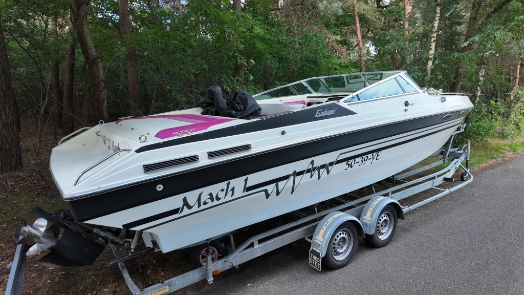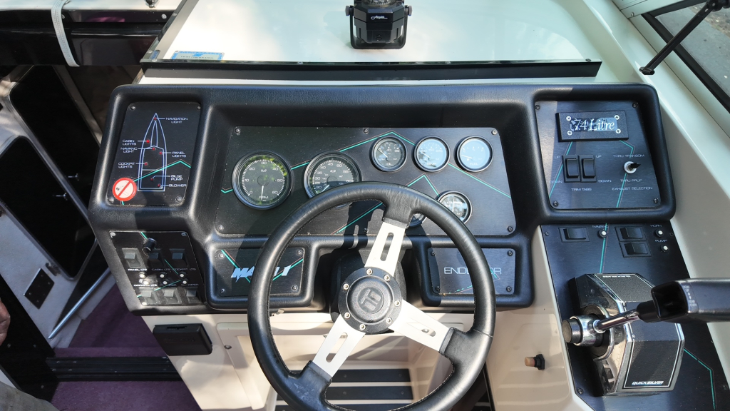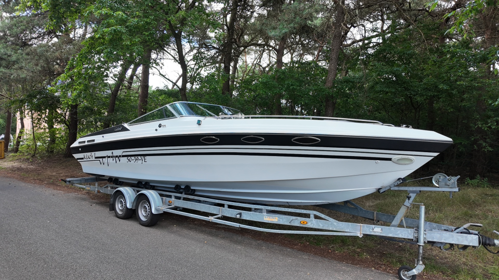 House of Boats bemiddelt exclusief in deze zeldzaam mooie Baha Mach 1 29 Endeavor – een echte liefhebbersboot uit 1991, in een uitzonderlijke staat. Deze klassieke Amerikaanse performance boot is uitgerust met de originele MerCruiser 7.4L V8 met 330 pk en slechts 400 draaiuren. Een ongekend lage tellerstand voor een boot van dit kaliber en bouwjaar.