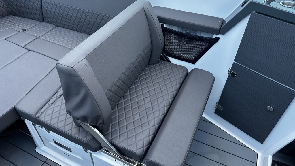 De diepe V-romp zorgt voor een zeer stabiel en droog vaargedrag, ook bij hogere snelheden en ruiger water. In combinatie met de krachtige Mercury 250pk V8 buitenboordmotor levert dit een indrukwekkende performance en veel vaarplezier.