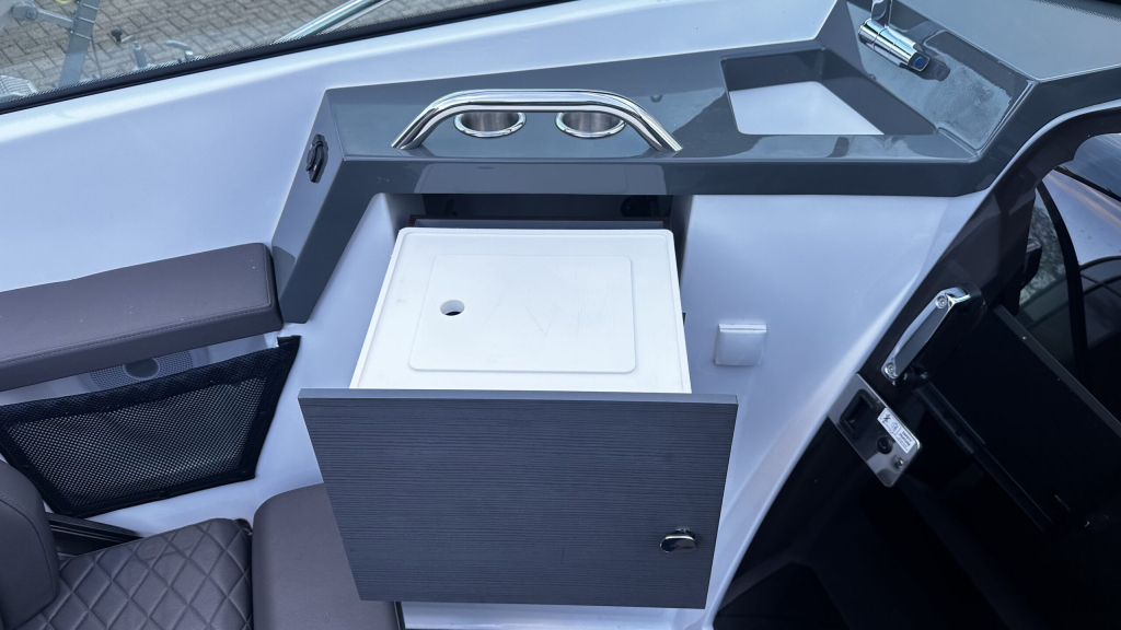 De boot beschikt over een ruime en overzichtelijke cockpit met comfortabele zitplaatsen en veel opbergruimte. Voorin bevindt zich een luxe kajuit met slaapmogelijkheid, ideaal voor overnachtingen of om even beschut te zitten. De open indeling maakt de boot zeer geschikt om met familie of vrienden te genieten op het water.